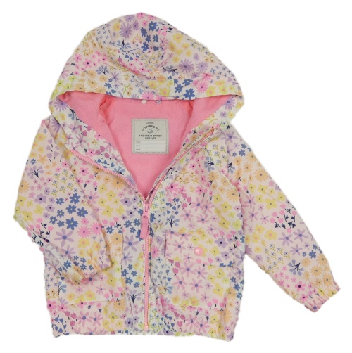 Světlerůžová šusťáková podzimní bunda s kytičkami a kapucí George