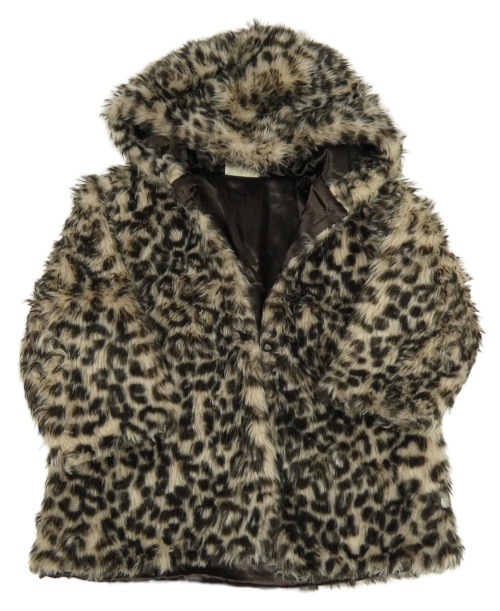 Béžovo-černá vzorovaná kožešinová podšitá bunda s kapucí