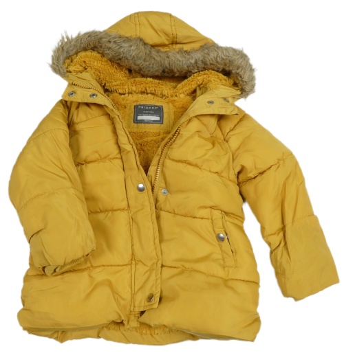 Hořčicová šusťáková zimní bunda s kapucí s kožíškem Primark