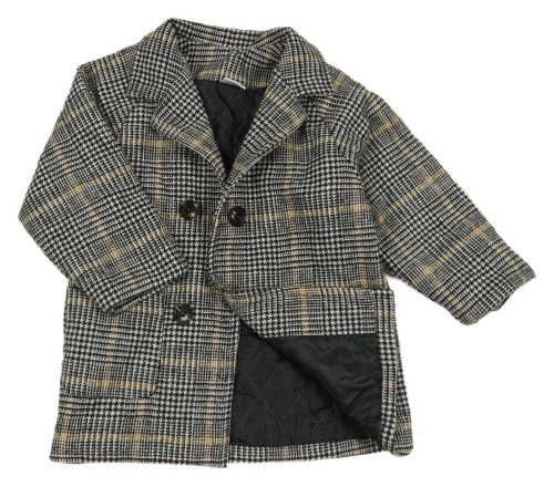 Černo-bílo-medový kostkovaný zateplený kabát