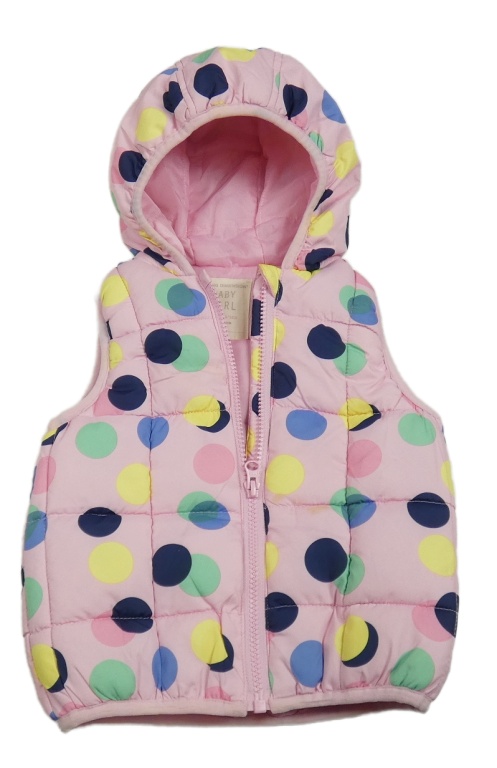 Světlerůžová šustáková prošívaná zateplená vesta s puntíky Yd.