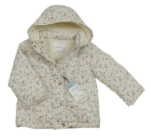 Nové - Bílá květovaná šusťáková zimní bunda s kapucí Primark