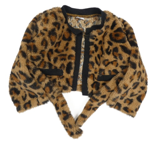 Béžovo-hnědo-černé kožešinové bolerko s páskem