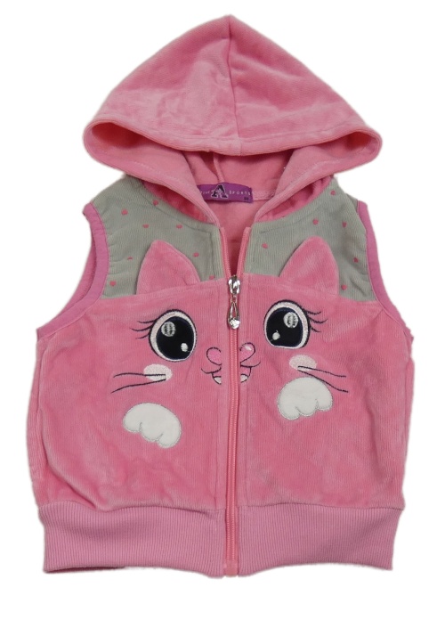 Růžovo-šedá sametová vesta s kočkou a kapucí