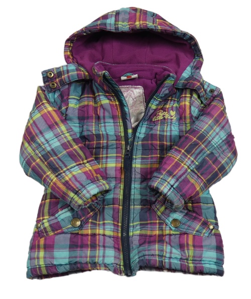 Světlemodro-růžová kostkovaná šusťáková zimní parka s kapucí Topolino