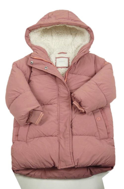 Růžový šusťákový prošívaný zimní kabát s kapucí Next