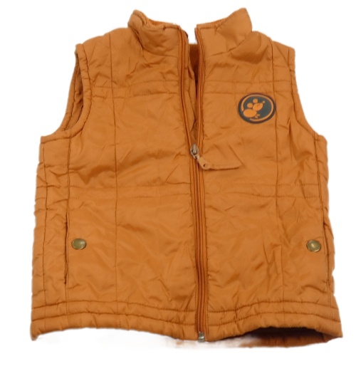 • Cihlová prošívaná šusťáková zateplená vesta s nášivkou impidimpi