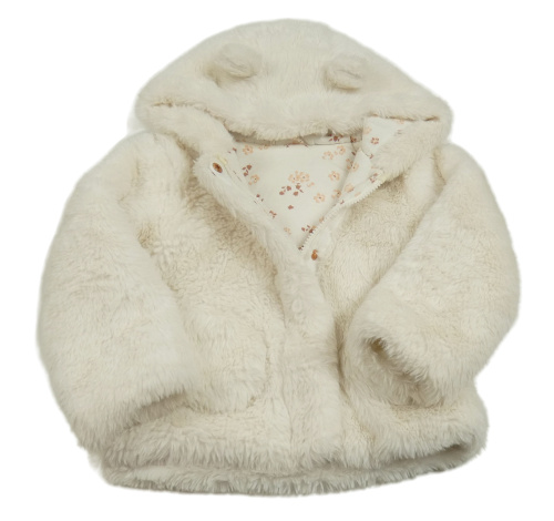 Smetanový kožešinový zateplený kabát s kapucí s oušky St. Bernard