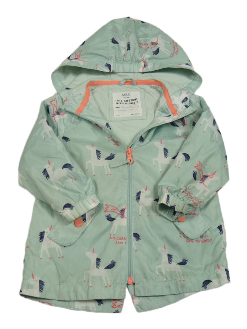 Mintová šusťáková jarní bunda s jednorožci a kapucí M&S