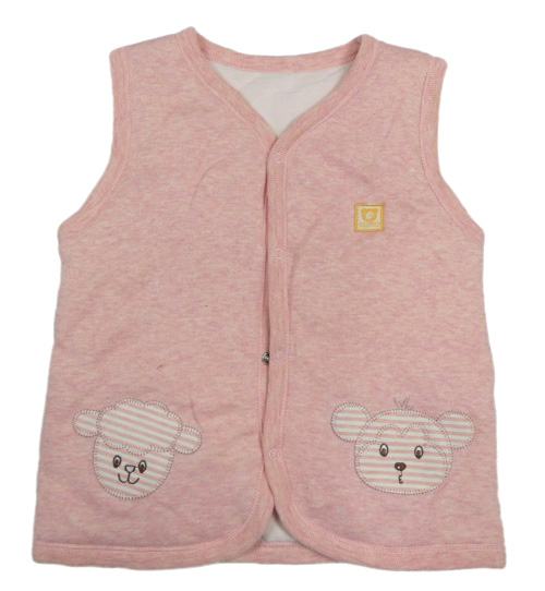 Růžová melírovaná tepláková zateplená vesta s medvědem a ovcí