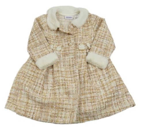 Béžovo-zlato-smetanový pletený kabát s kožešinou a mašlemi