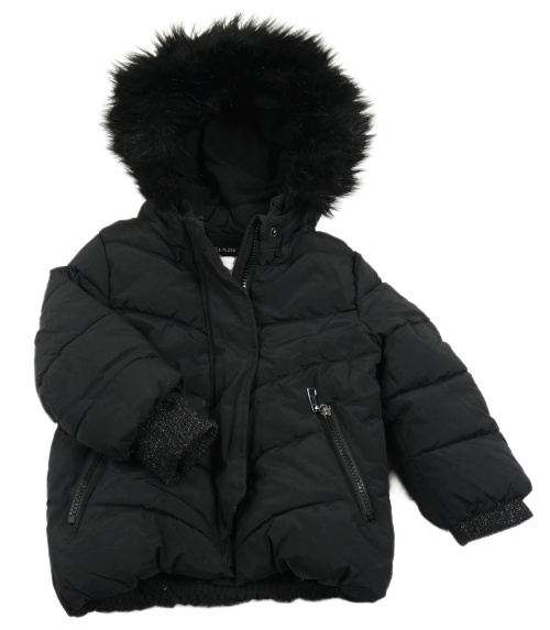 Černá prošívaná šusťáková zimní bunda s kapucí s kožešinou KIABI
