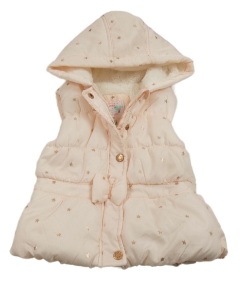 Světlerůžová šusťáková zateplená vesta s hvězdičkami a kapucí LC Waikiki