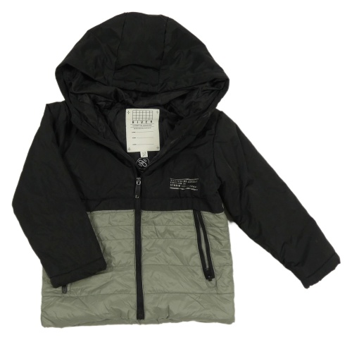 • Černo-světlekhaki prošívaná šusťáková zateplená bunda s nápisy a kapucí RIVER ISLAND