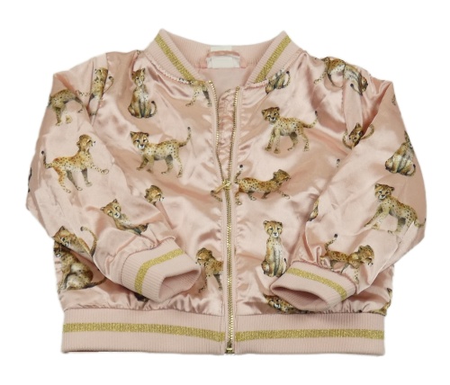 Světlerůžový saténový jarní crop bomber s leopardy a zlatým pruhem H&M