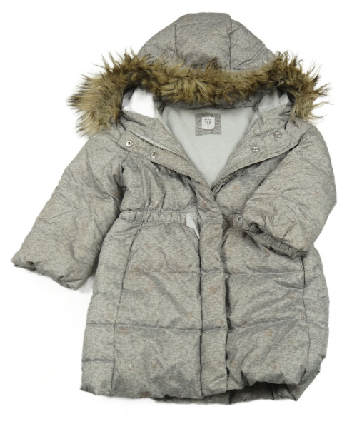 Béžová melírovaná šusťáková zimní bunda s hvězdami a kapucí s kožešinou GAP