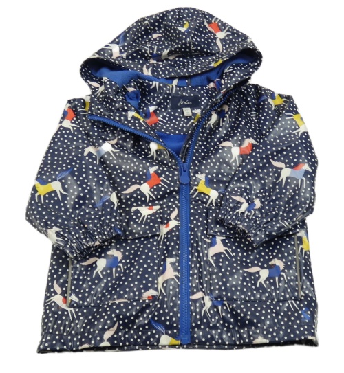 Tmavomodrá puntíkatá nepromokavá jarní bunda s koníky a kapucí Joules