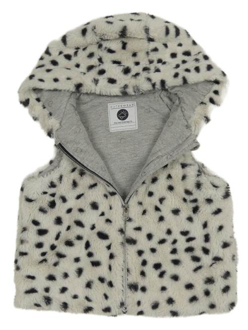 Smetanovo-černá vzorovaná kožešinová zateplená vesta s kapucí Tu