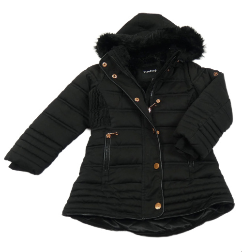 Černá šusťáková zimní bunda s kapucí s kožešinou Firetrap