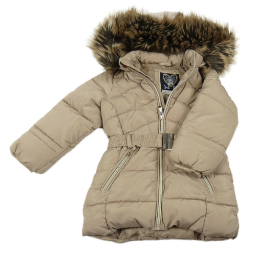 Béžový šusťákový prošívaný zimní kabát s páskem a kapucí C&A