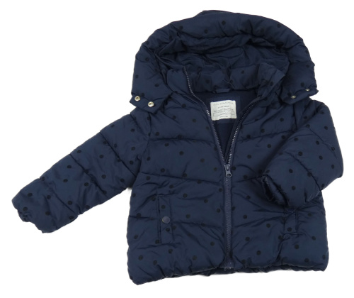 Tmavomodrá šusťáková prošívaná zimní bunda s puntíky a kapucí Primark