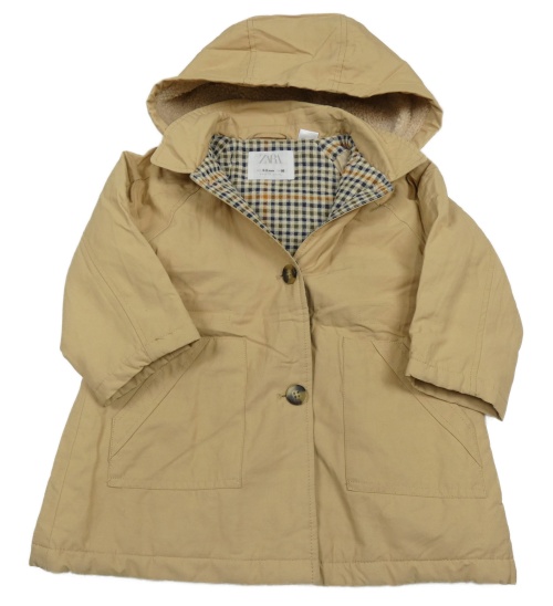 Béžový šusťákový zateplený kabát s kapucí ZARA