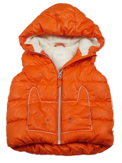 Červená šusťáková zateplená vesta s kočkou a kapucí Next