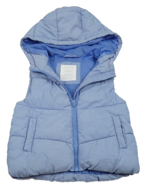 Světlemodrá šusťáková zateplená vesta s kapucí Primark