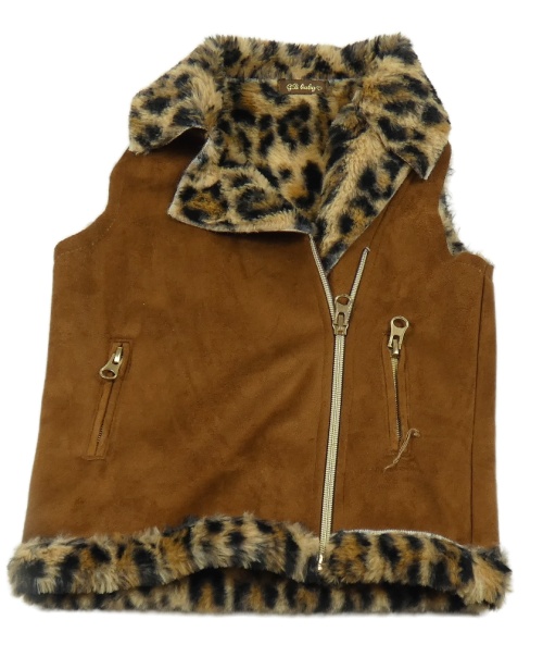Hnědá semišová zateplená vesta se vzorovanou kožešinou GB Baby