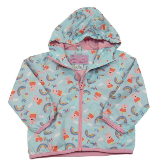 Světlemodro-růžová šusťáková jarní bunda s Pepinou a kapucí