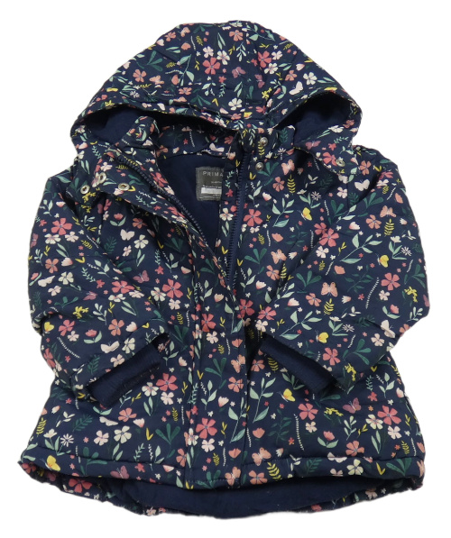 Tmavomodrá květovaná šusťáková zateplená parka s kapucí Primark