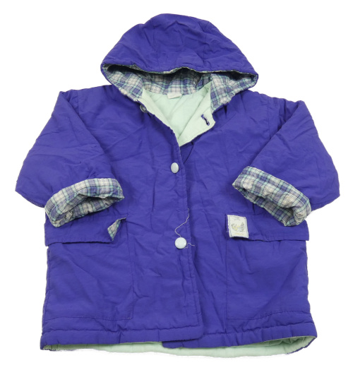 Fialová šusťáková lehce zateplená bunda s kapsami a kapucí