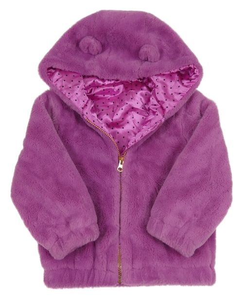 Fialovorůžová kožešinová zateplená bunda s kapucí s oušky Nutmeg