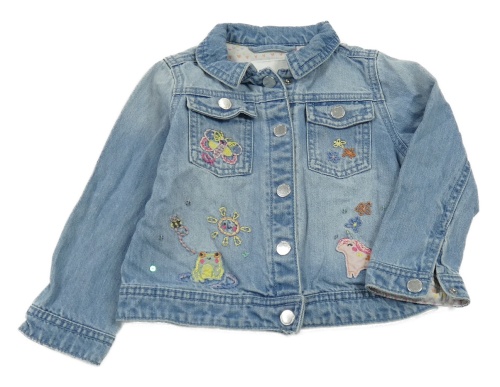 Modrá riflová bunda s výšivkami květů a jednorožcem Next
