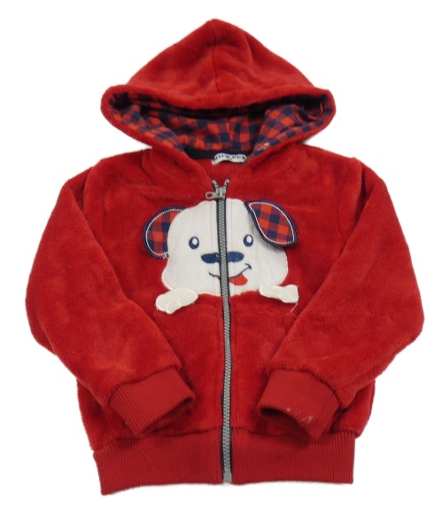 Červený plyšový bomber s pejskem a kapucí MILK PUB