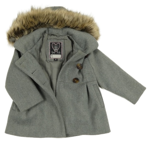 Šedý flaušový kabát s kapucí s kožešinou C&A