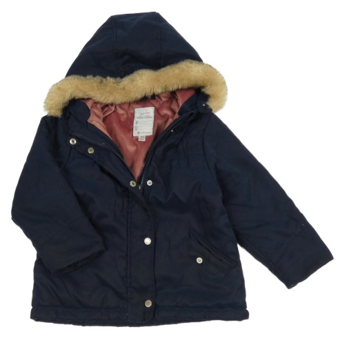 Tmavomodrá šusťáková zateplená bunda s kapucí s kožešinou