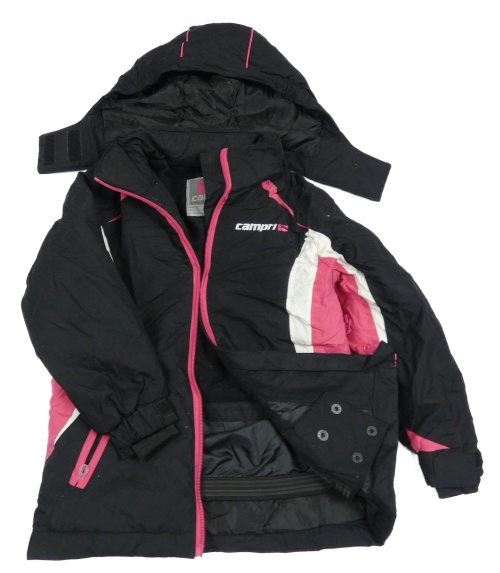 Černo-bílo-růžová šusťáková lyžařská bunda s kapucí Campri