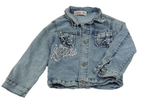 Modrá melírovaná riflová bunda s kapsami a nápisem