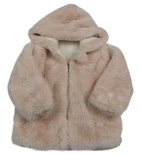 Světlerůžová kožešinová zateplená bunda s kapucí Shein