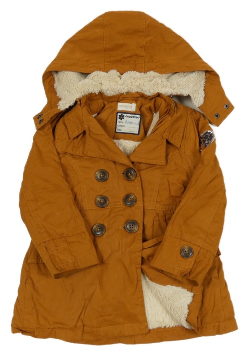 • Medový šusťákový zateplený kabát se srdíčkem s flitry a volánkem a odepínací kapucí ORCHESTRA