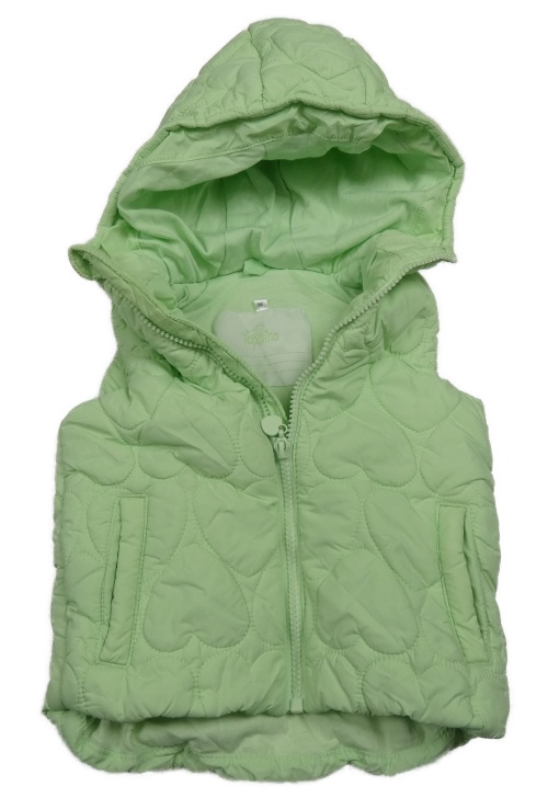 Neonově zelená šusťáková prošívaná zateplená vesta s kapucí Topolino