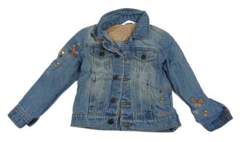 Světlemodrá riflová bunda s motýlky a květy a vážkami a límečkem M&S