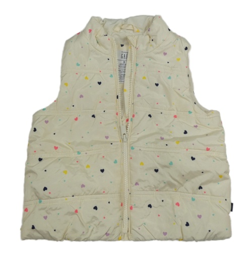 Smetanová prošívaná šusťáková zateplená vesta s barevnými srdíčky GAP