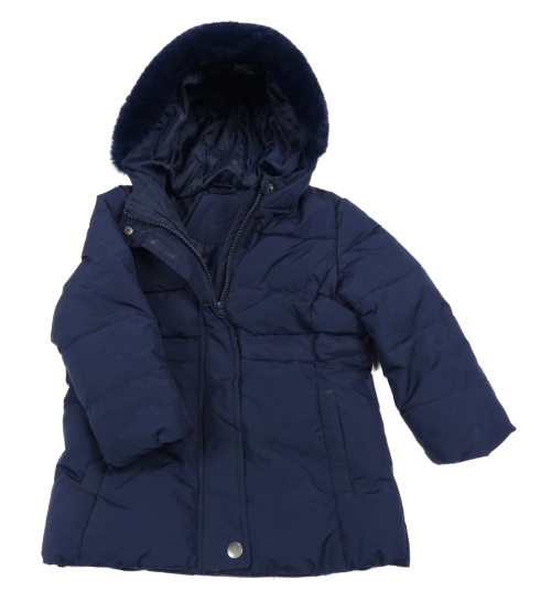 Tmavomodrý prošívaný šusťákový zimní kabát s kapucí s kožešinou Kiki&Koko