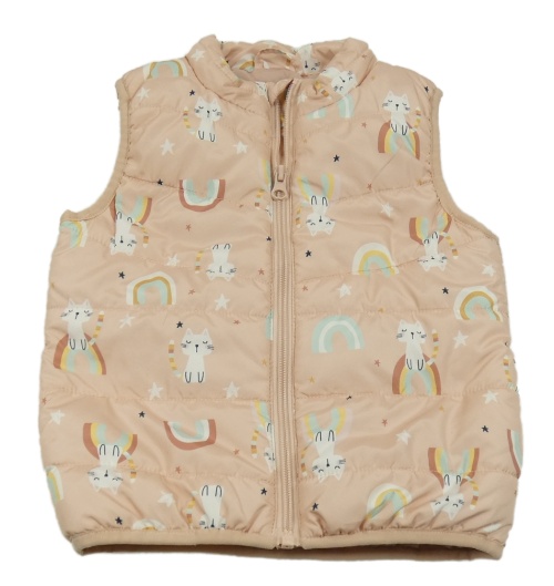 Světlerůžová šusťáková zateplená vesta s kočkami a duhami Name it