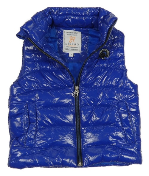 Safírová lesklá šusťáková zateplená vesta s nášivkou