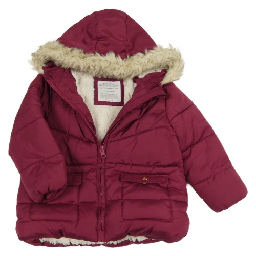Vínová šusťáková zimní bunda s kapucí s kožešinou Primark