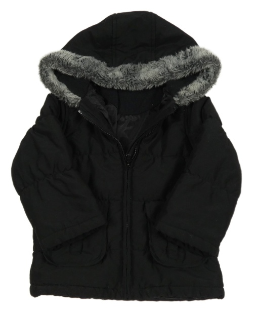 • Černá prošívaná šusťáková zimní bunda s kapucí s kožešinou Mothercare