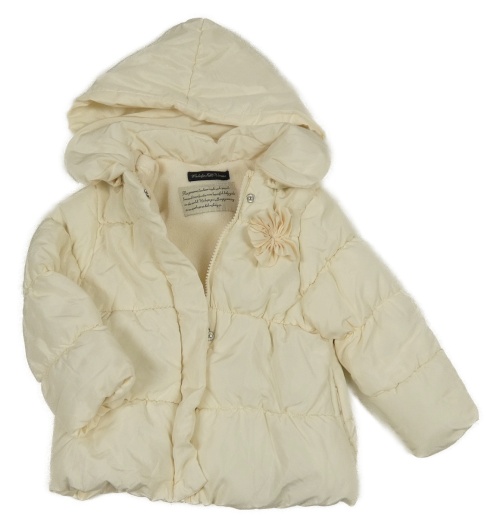 Smetanová šusťáková zimní bunda s 3D květem a kapucí
